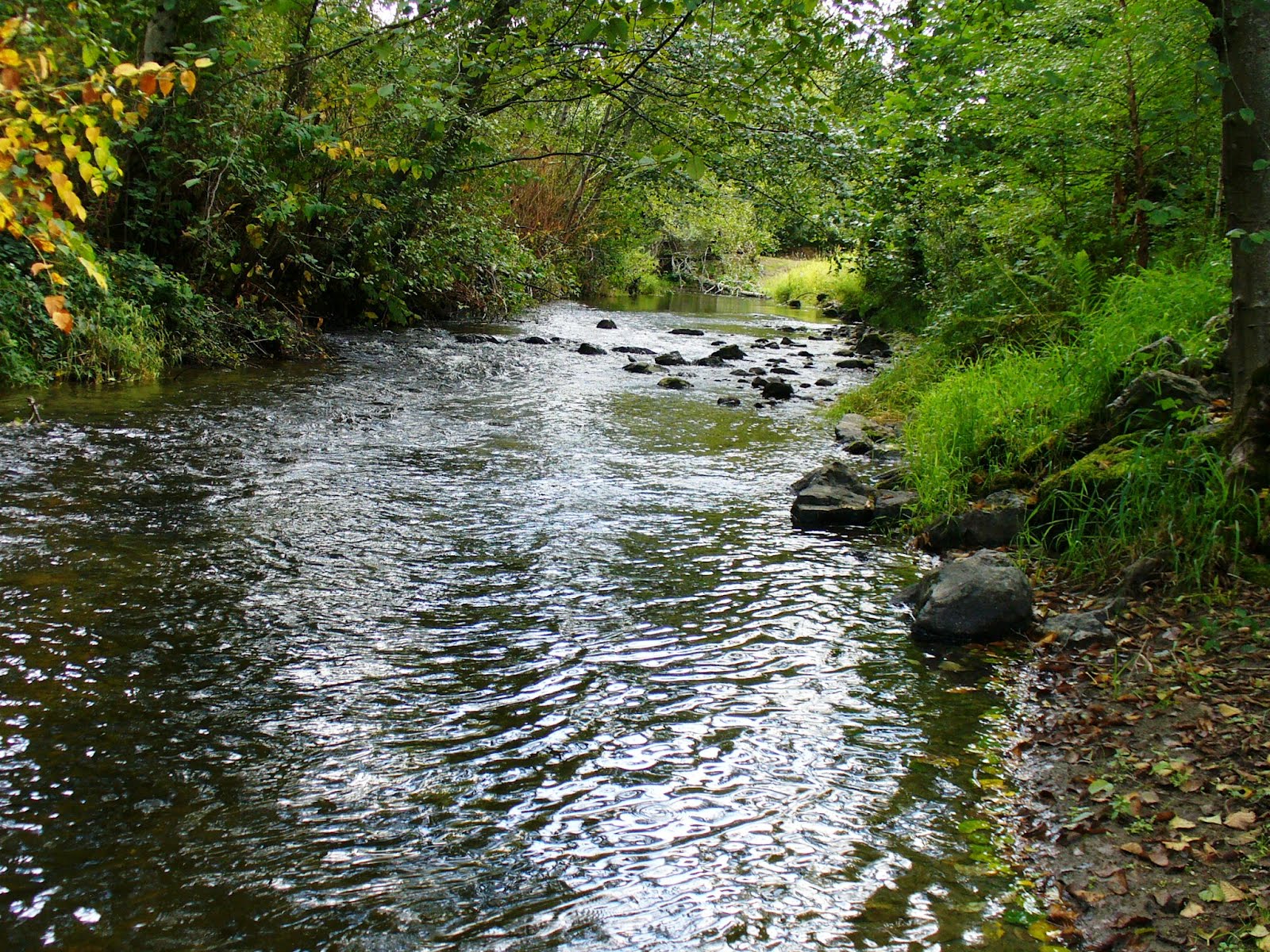 Yet there is the shock of cold water we feel on our ankles when we tenderly step into the water. There is the smoothness of the stone underneath the balls of our feet. There is the crawdad that disappears into a cloud of murk, while the water spiders transport across the surface like electrons. We look up and see others around us, tenderly padding their way across the stream, hands and arms outstretched for balance. The rapid knocking of an unseen woodpecker resonates in the air... nature's jackhammering, to be sure, yet cleaner somehow than the human version. We feel the warm air on our faces, the sunshine... or the rain. We smile, we lament, we hold hands, we walk alone.